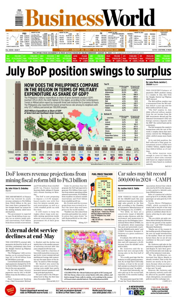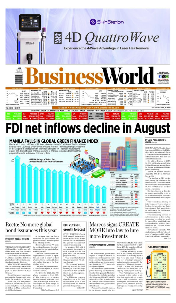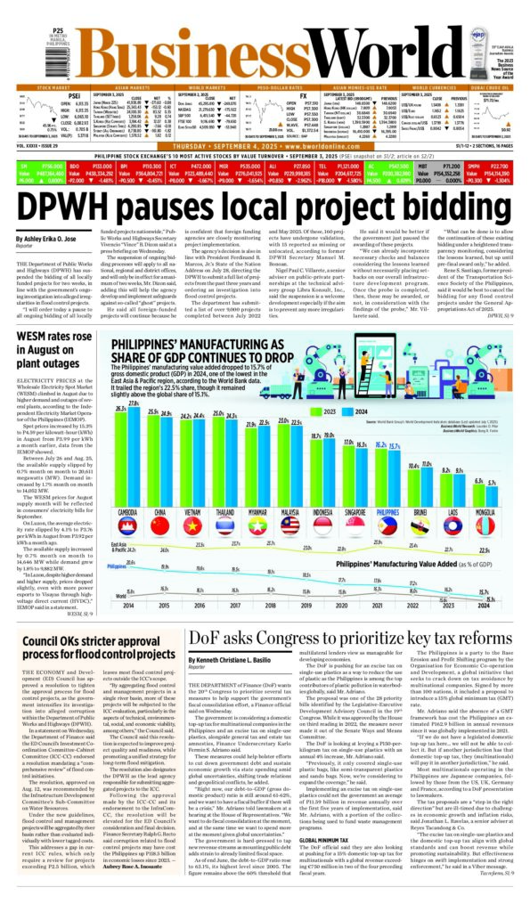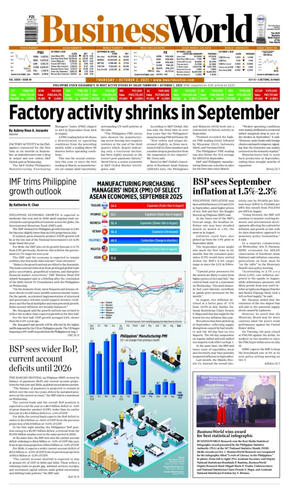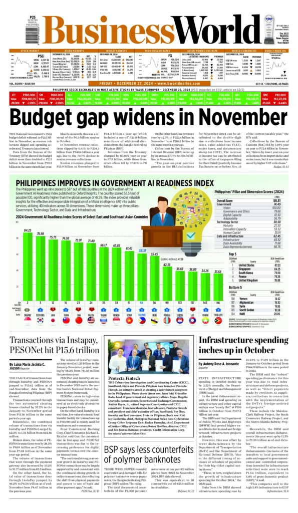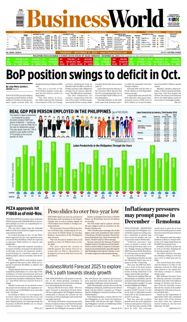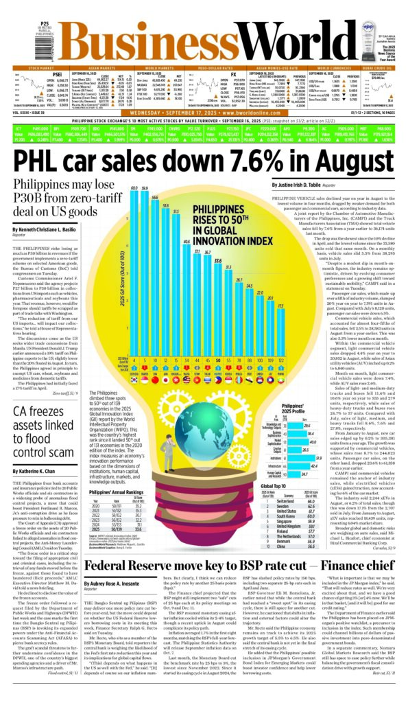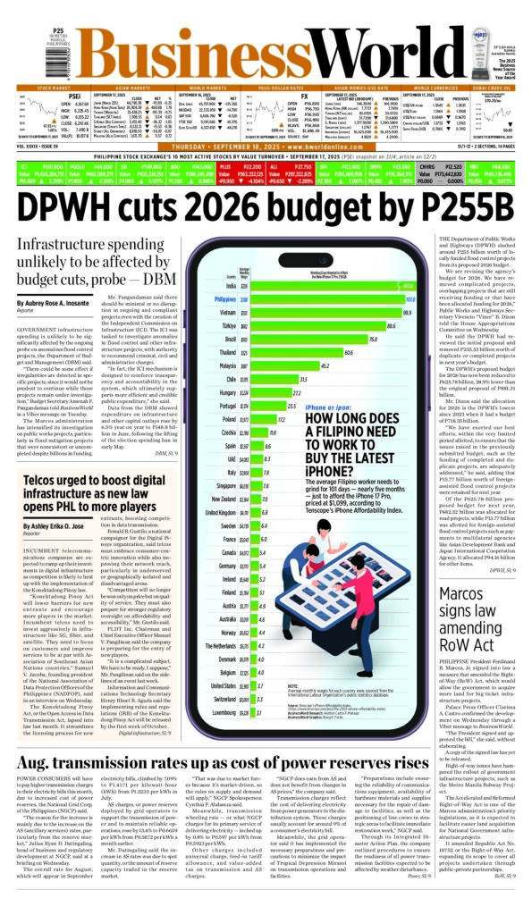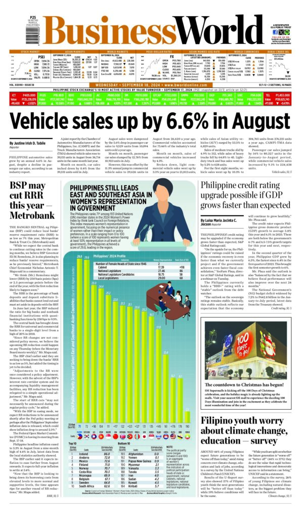 The fiscal gap shrank 9.22% year on year to P248.1 billion, while month on month, it nearly tripled from August’s P84.8-billion shortfall. Total government spending dropped 7.53% to P529.8 billion from a year earlier, reflecting a slowdown in project implementation.
