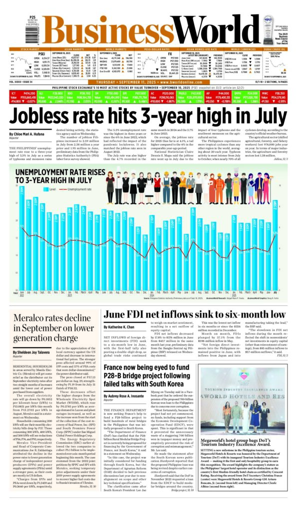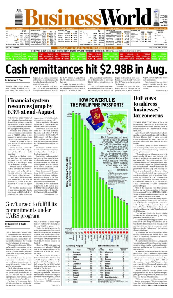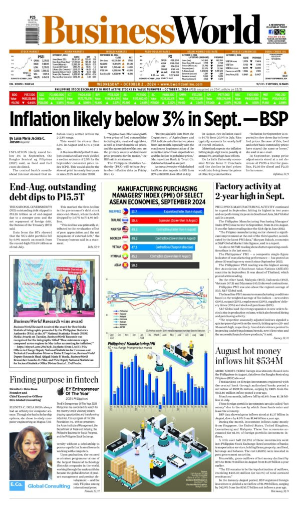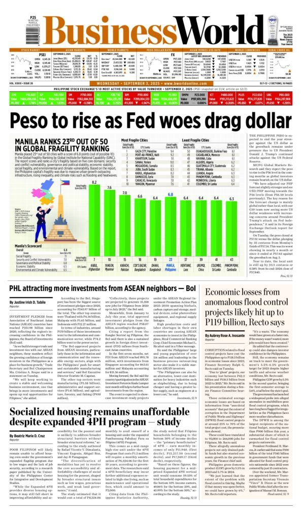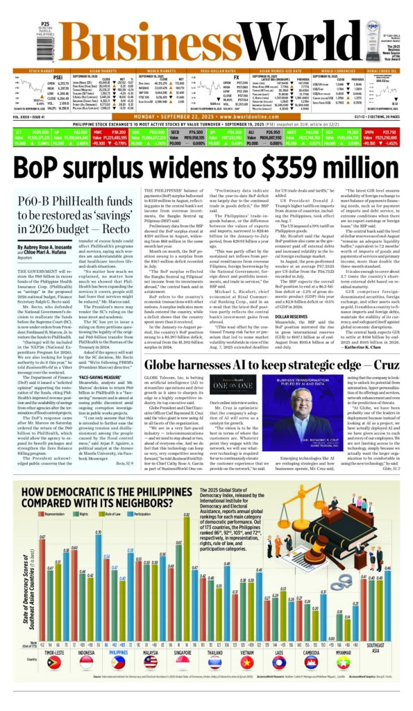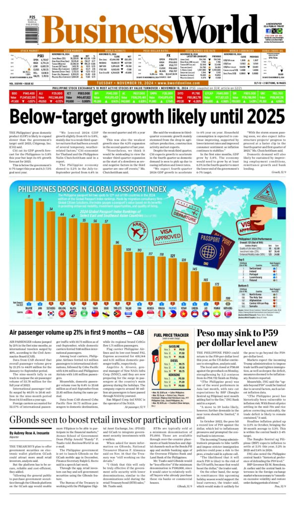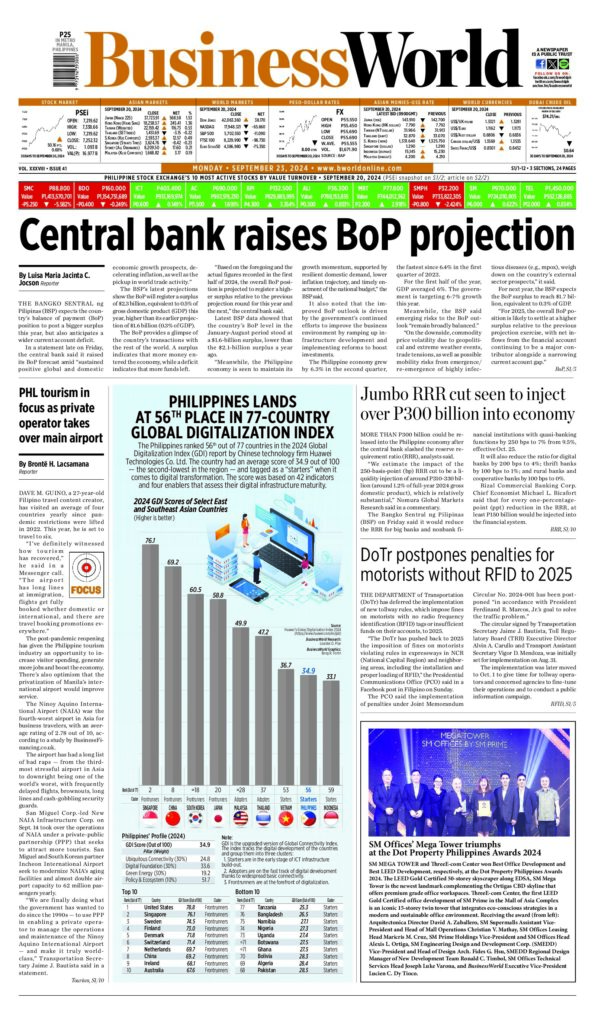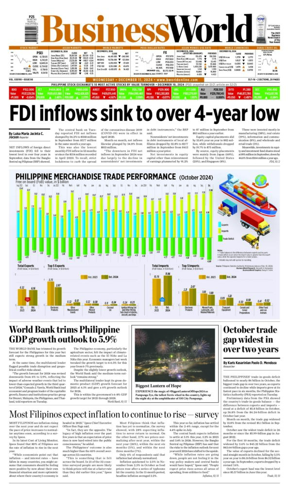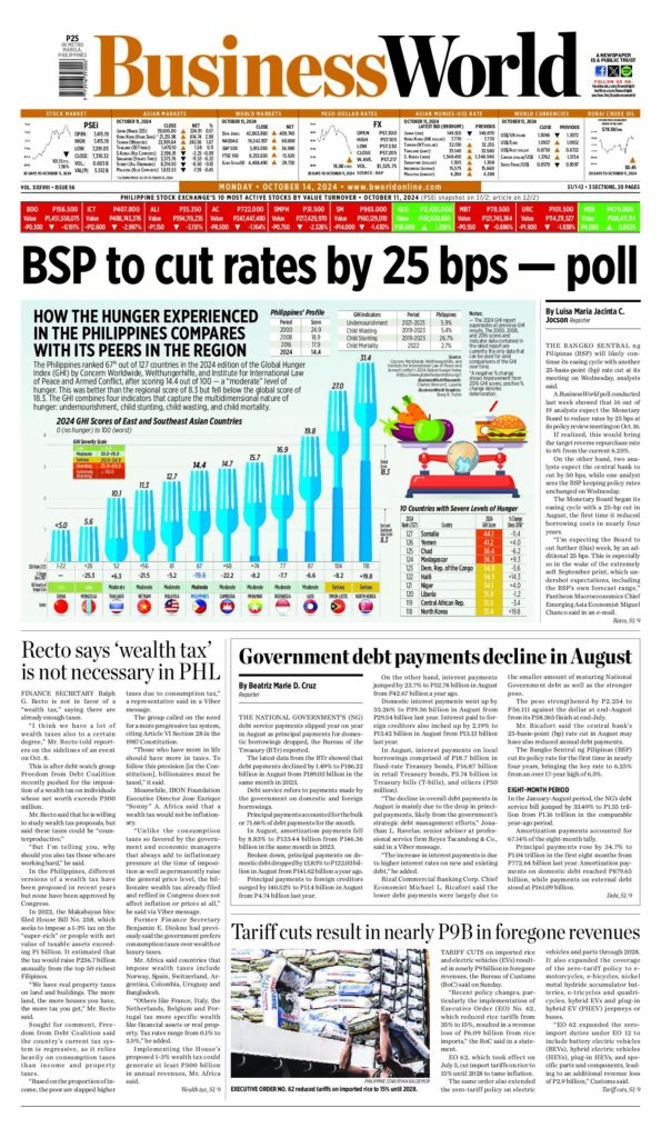 The fiscal gap shrank 9.22% year on year to P248.1 billion, while month on month, it nearly tripled from August’s P84.8-billion shortfall. Total government spending dropped 7.53% to P529.8 billion from a year earlier, reflecting a slowdown in project implementation.