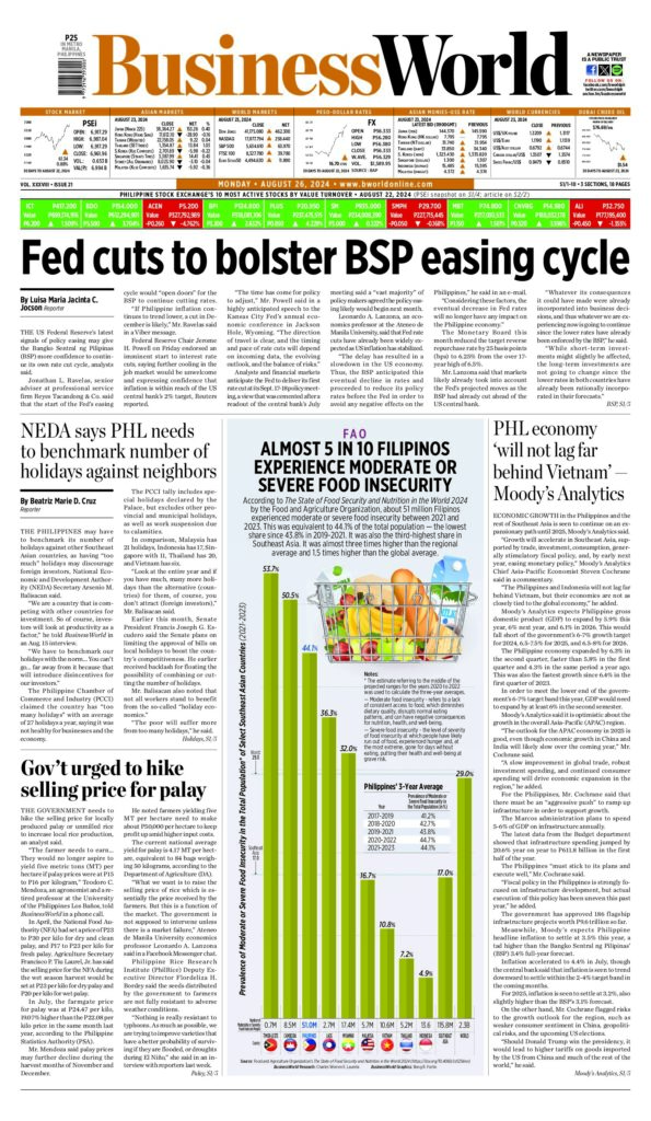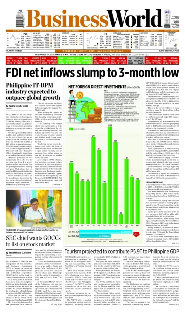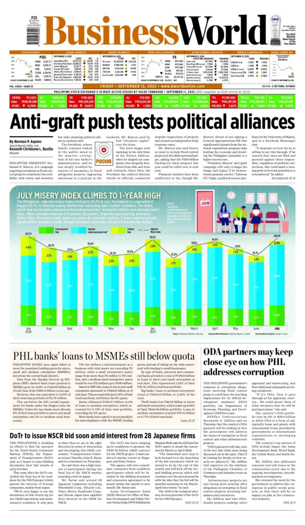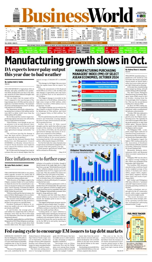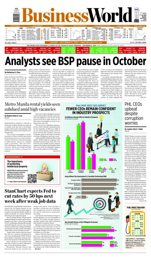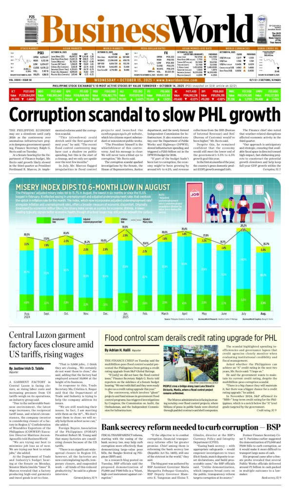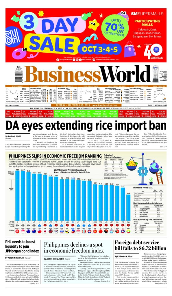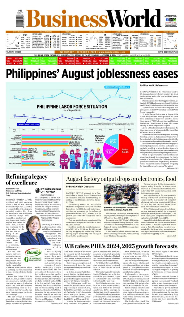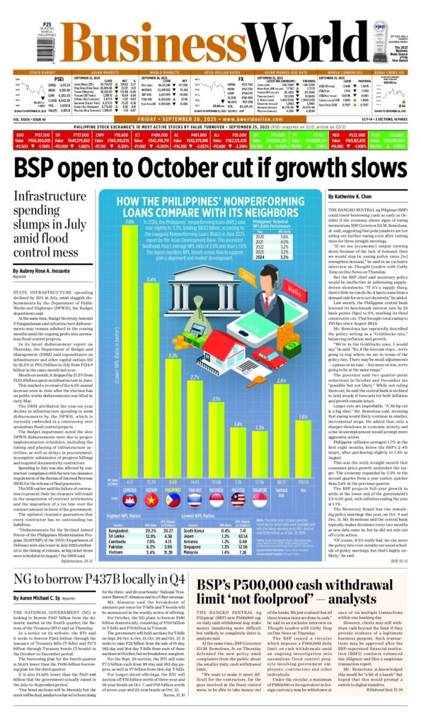 The fiscal gap shrank 9.22% year on year to P248.1 billion, while month on month, it nearly tripled from August’s P84.8-billion shortfall. Total government spending dropped 7.53% to P529.8 billion from a year earlier, reflecting a slowdown in project implementation.