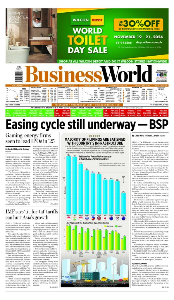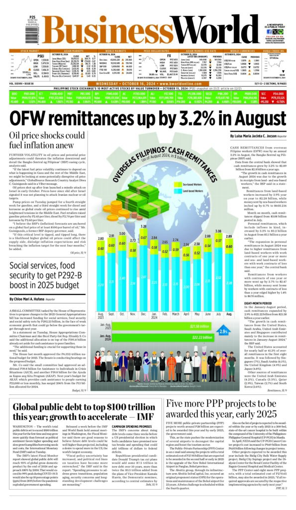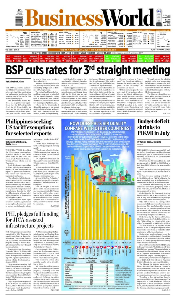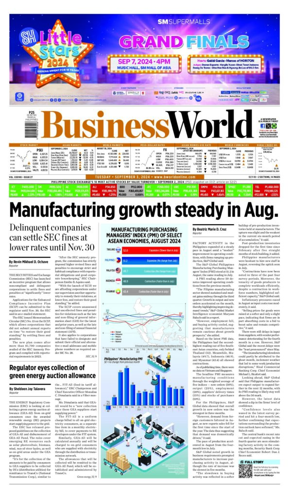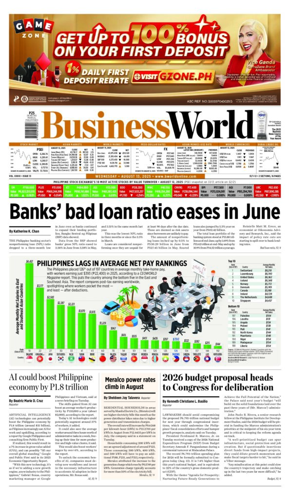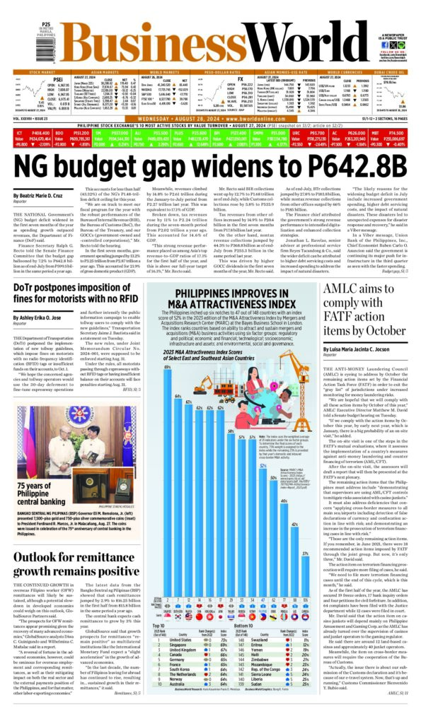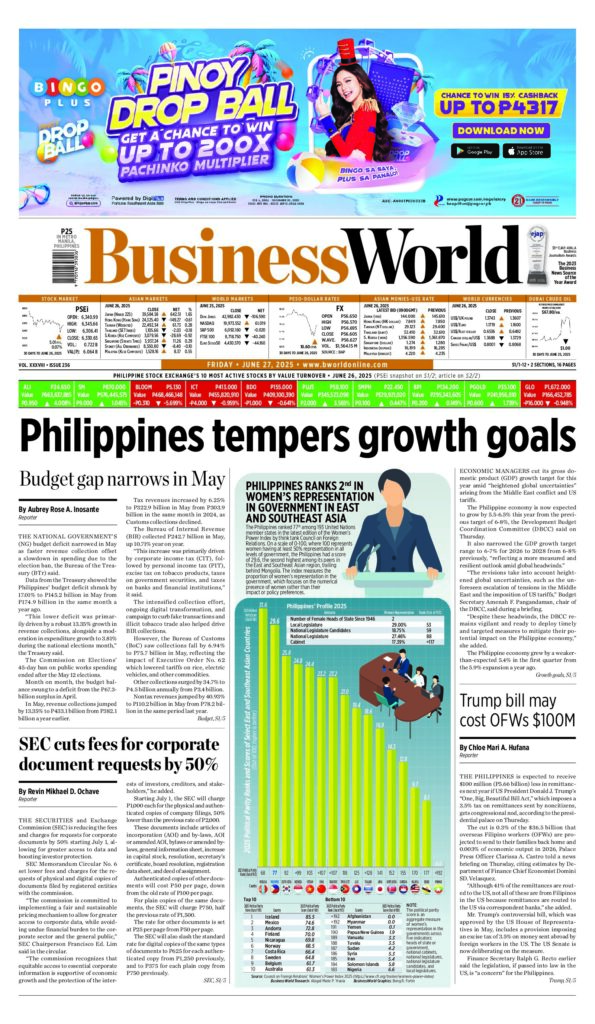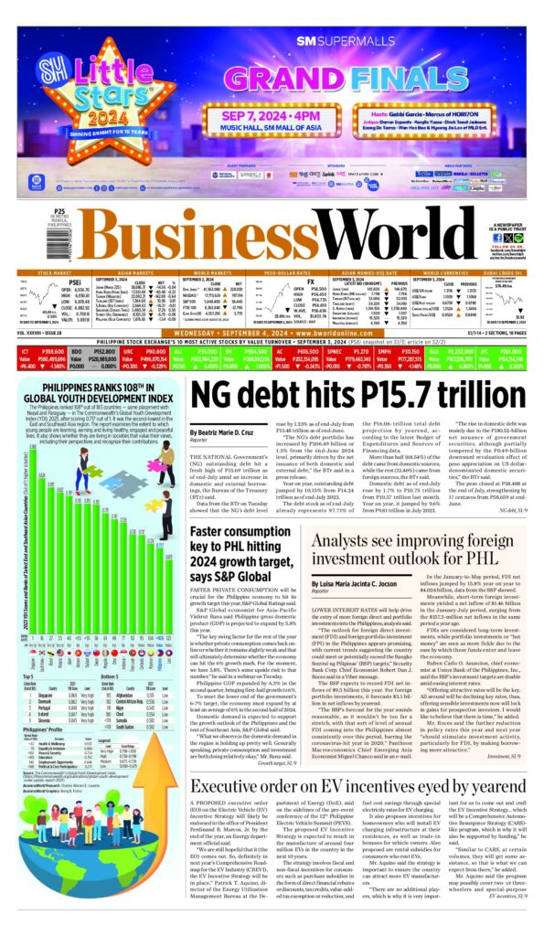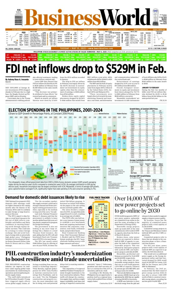 The fiscal gap shrank 9.22% year on year to P248.1 billion, while month on month, it nearly tripled from August’s P84.8-billion shortfall. Total government spending dropped 7.53% to P529.8 billion from a year earlier, reflecting a slowdown in project implementation.