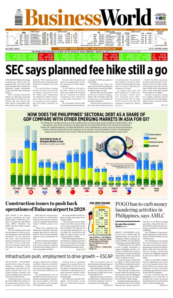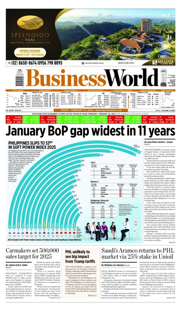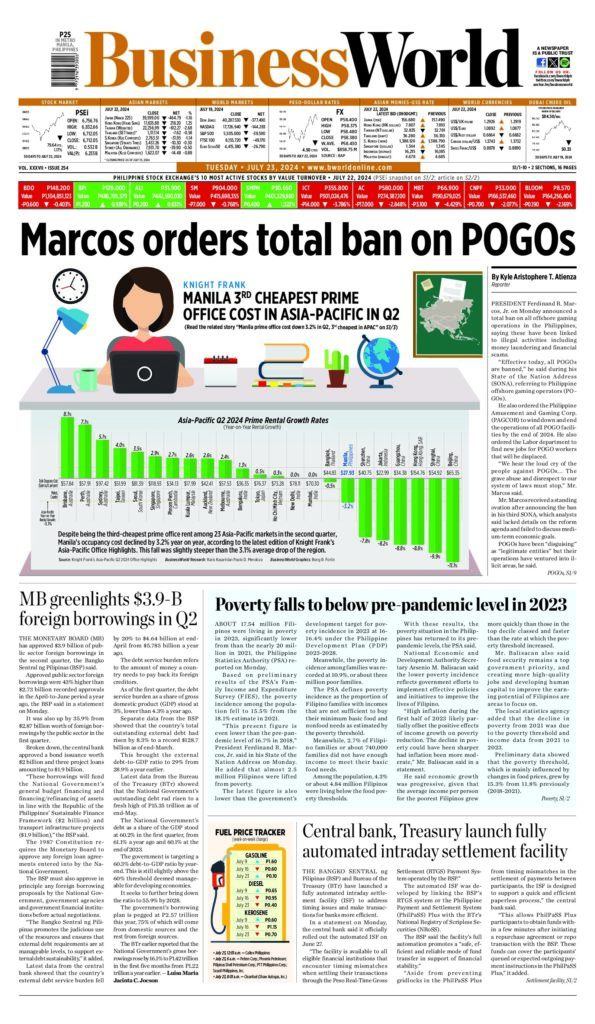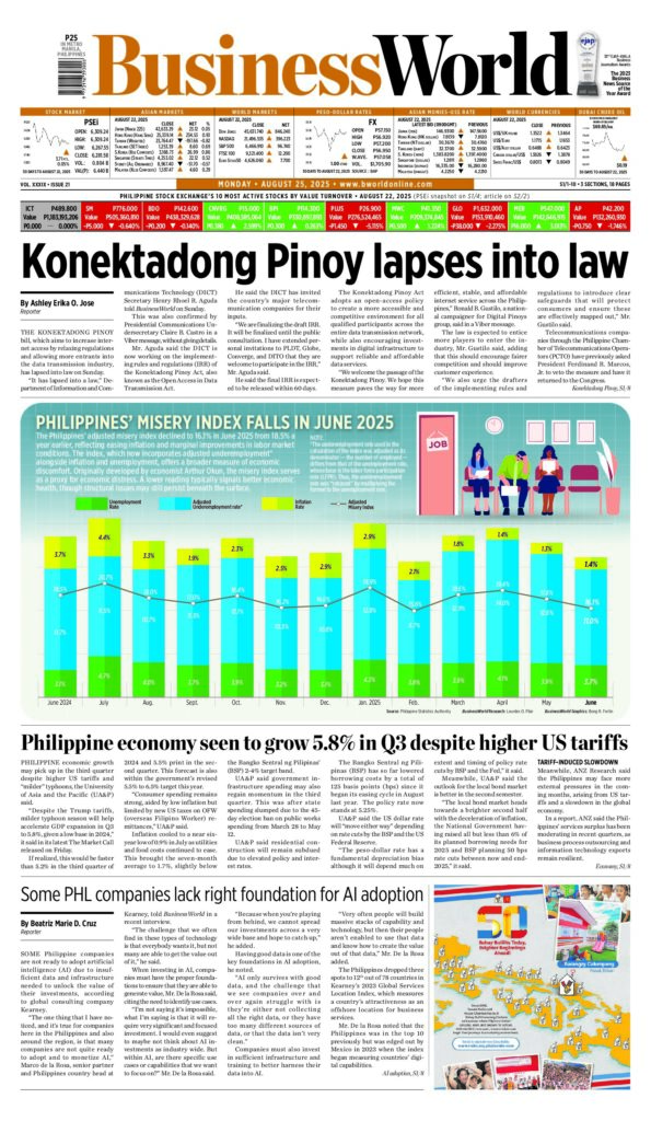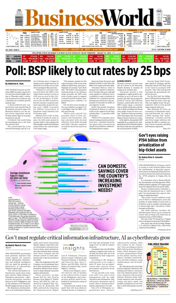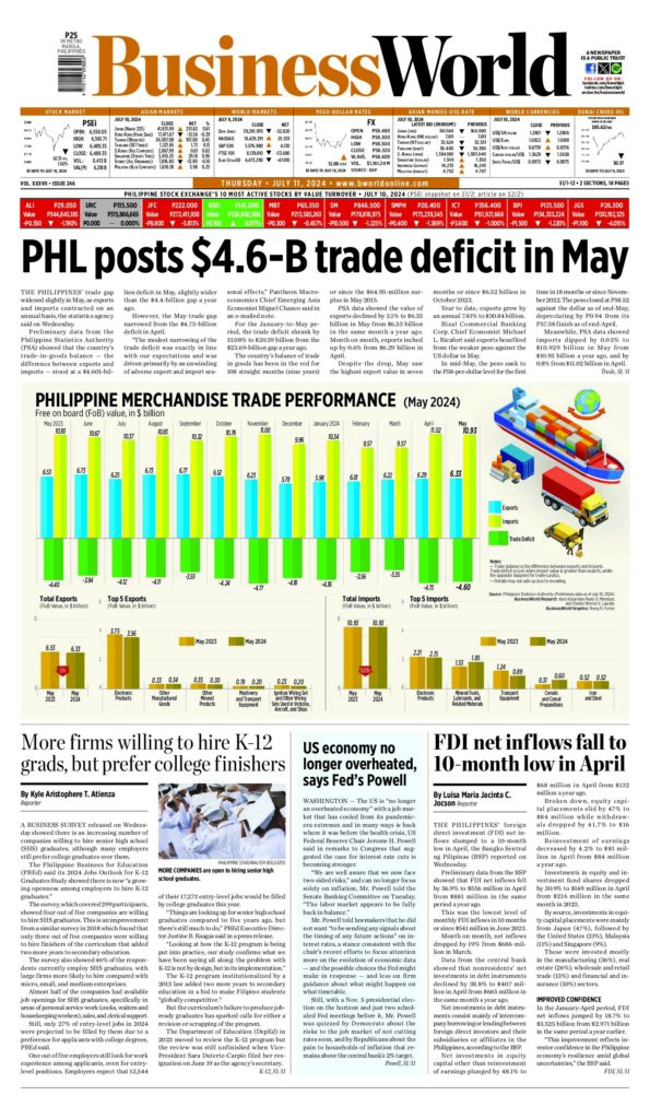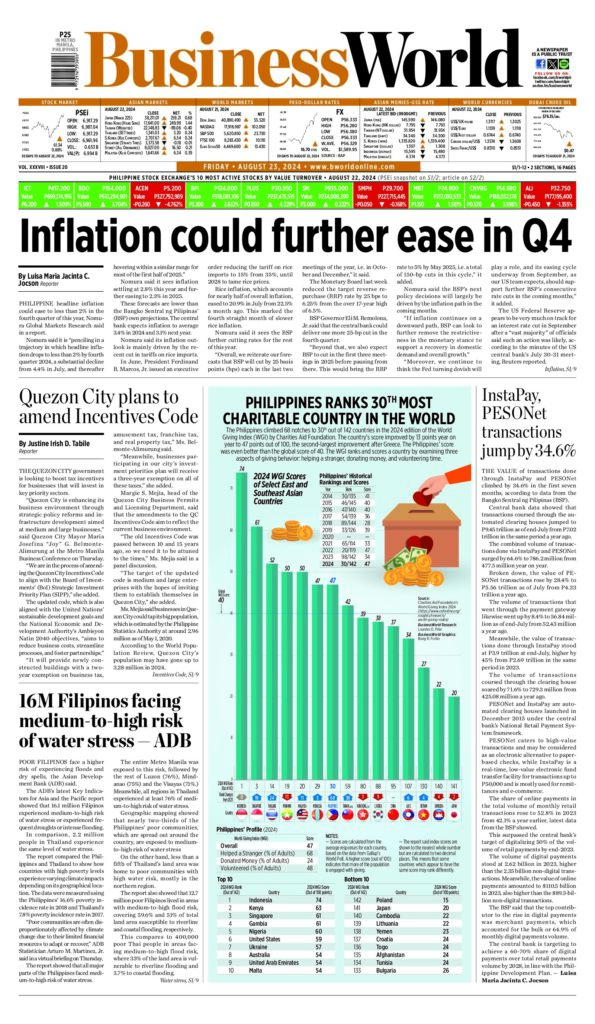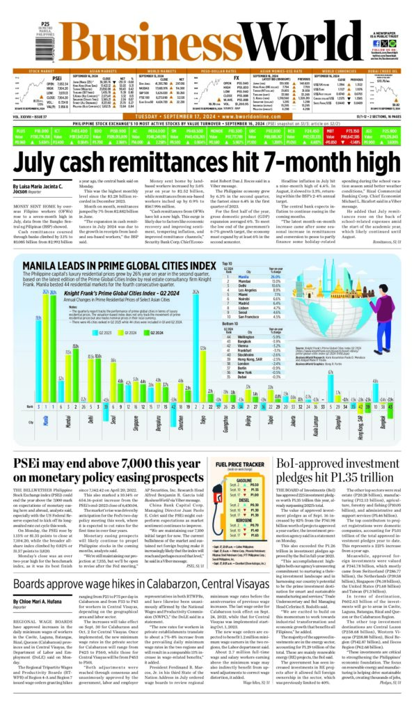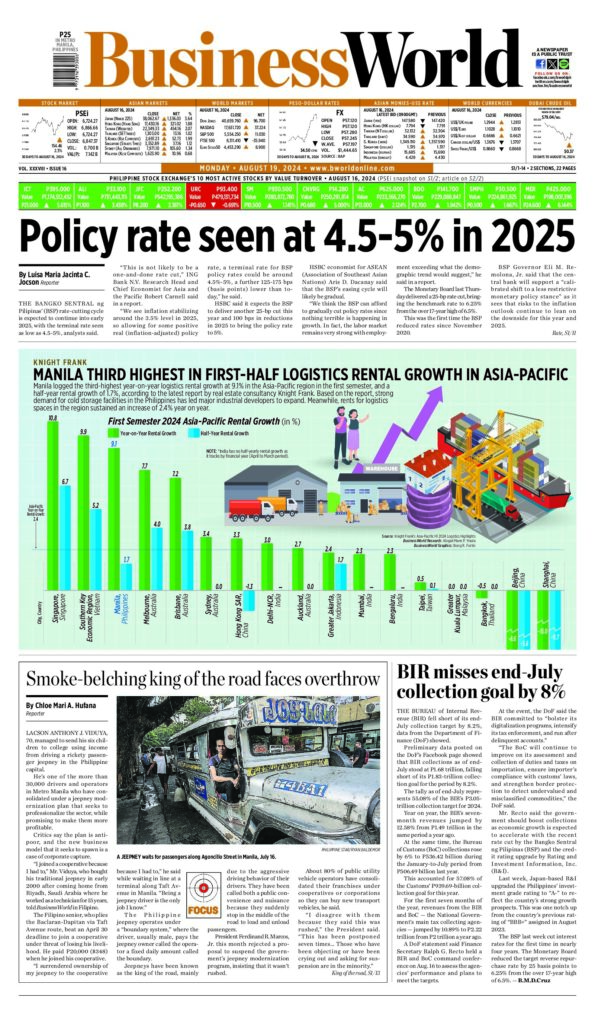 The fiscal gap shrank 9.22% year on year to P248.1 billion, while month on month, it nearly tripled from August’s P84.8-billion shortfall. Total government spending dropped 7.53% to P529.8 billion from a year earlier, reflecting a slowdown in project implementation.