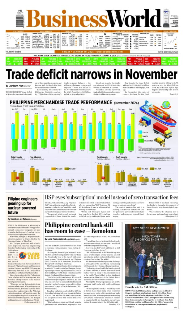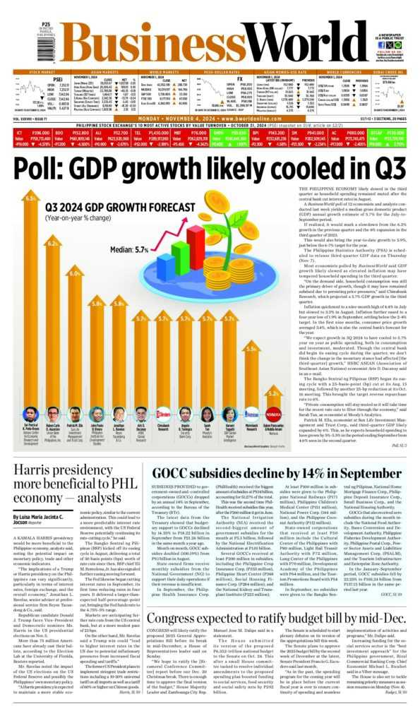 THE Philippines’ budget deficit narrowed in September, the Bureau of the Treasury (BTr) said on Thursday, as corruption probes into flood control projects slowed government spending.