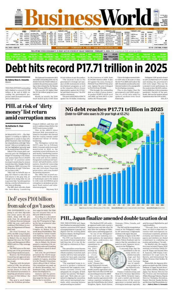 MONEY SENT HOME by Filipinos abroad jumped to a record high of $35.634 billion in 2025, with the weak peso boosting gains from dollar conversion, the Bangko Sentral ng Pilipinas (BSP) reported on Monday.