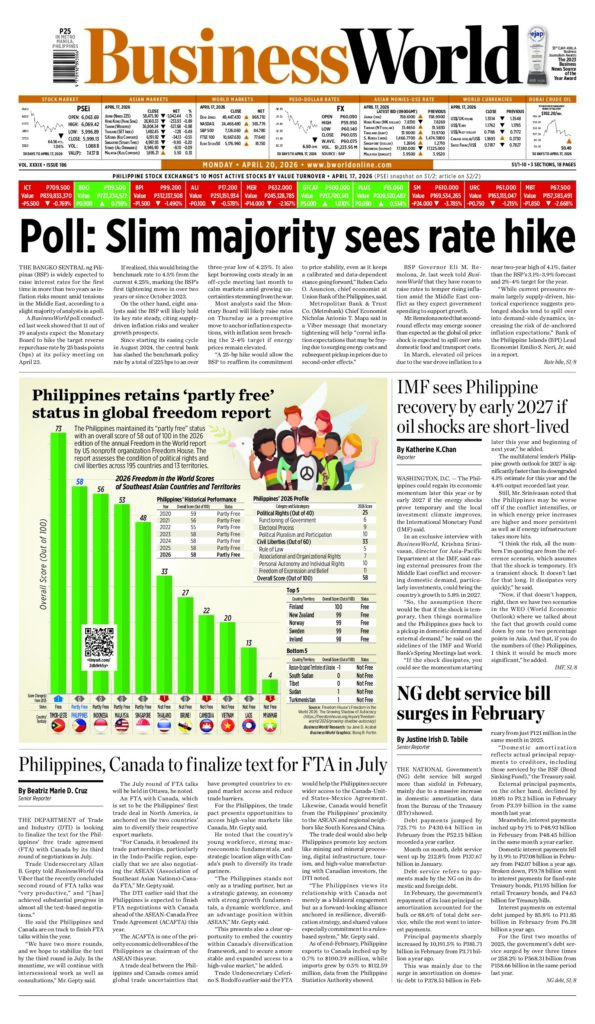At the Philippine Stock Exchange (PSE), the property index closed 1.62% or 44.24 points lower to 2,681.82, a day after President Ferdinand R. Marcos, Jr. ordered a total ban on POGOs in the country. The main PSE index rose by 0.61% or 41.07 points to end the trading day at 6,753.12.