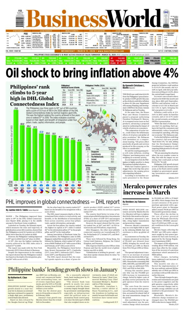 reduce GDP substantially, but the range of possible outcomes i s w i d e ,” Wo r l d B a n k L e a d Economist Souleymane Coulibaly said at a briefing on its Philippines Country Climate